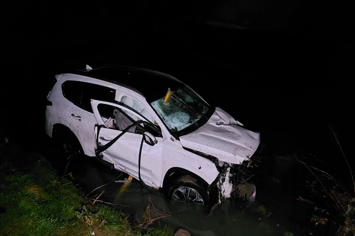 Zərbənin təsirindən körpünün dəmir konstruksiyaları zədələnib və avtomobil təxminən 20 metr hündürlükdən çaya düşüb.