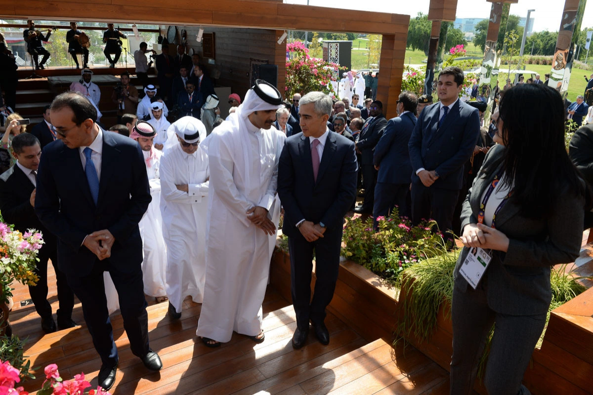 Qonaqlar daha sonra Azərbaycan pavilyonunu ziyarət ediblər. Burada “Doha Ekspo”nun ümumi mövzusuna uyğun Azərbaycan florasının zənginliyi göstərilir və iqlim zonalarına uyğun olaraq bitkilərdən kompozisiyalar yaradılıb. Pavilyonda Qarabağ florasının tacı olan Xarıbülbül gülünün gözəlliyi də ziyarətçilərə çatdırılır.