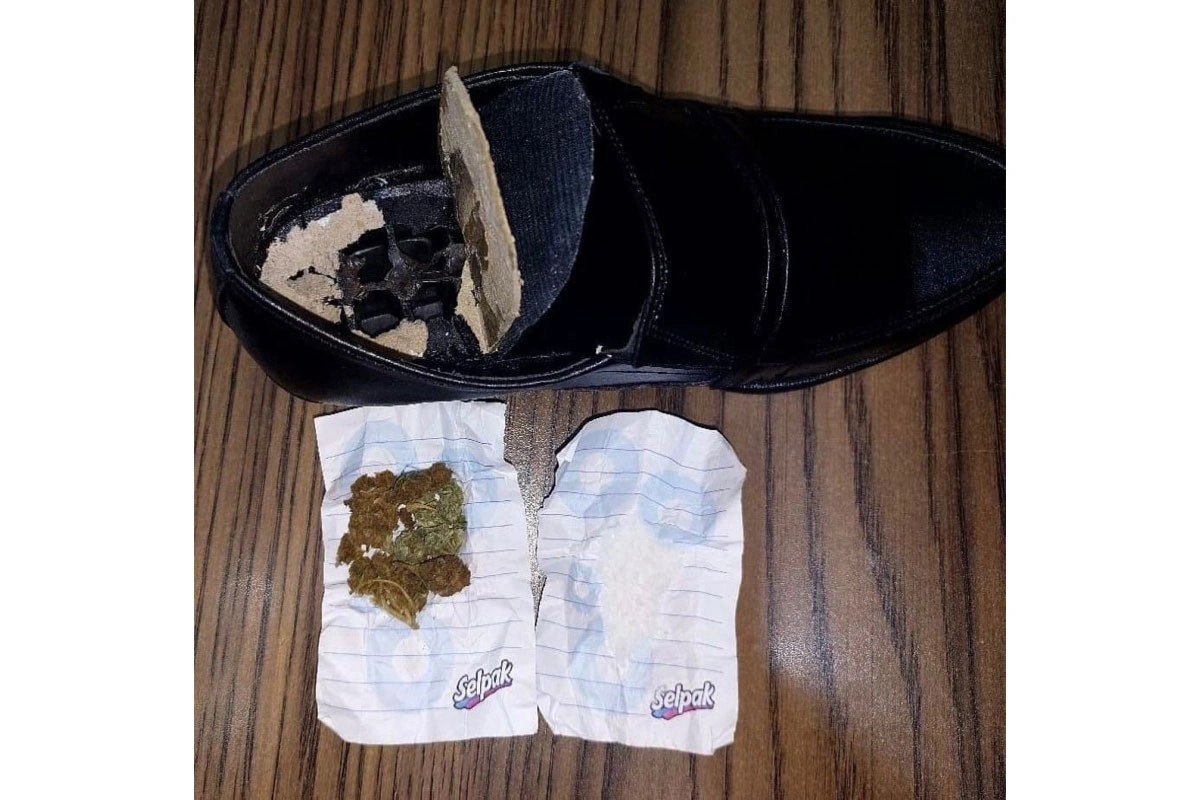Bildiirilib ki, həbs olunmuş şəxsə qohumu tərəfindən gətirilmiş sovqata baxış keçirilən zaman orada olan ayaqqabının içərisində xüsusi üsulla gizlədilmiş 2 ədəd bükülüdə 2,810 qram qurudulmuş marixuana və 1,233 qram metamfetamin aşkar olunub.