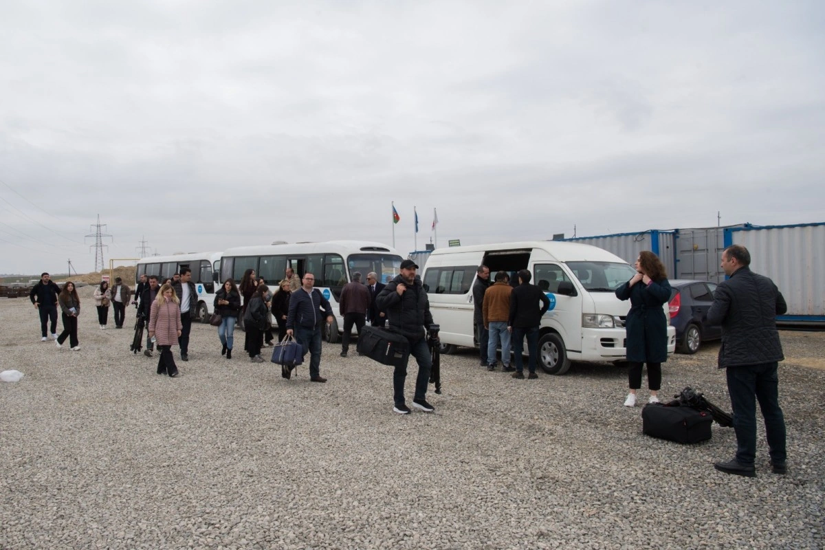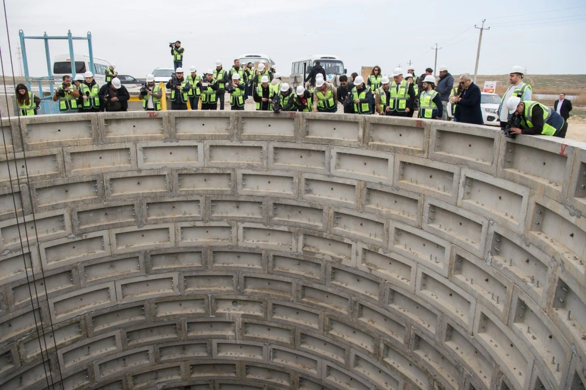 Media nümayəndələri Müşfiqabad hövzəsi üzrə gətirici kanalizasiya kollektorunun, şaxtaların, tullantı sular üçün sutəmizləyici qurğunun tikinti prosesi ilə yaxından tanış olub və mütəxəssislər onlara ətraflı məlumat veriblər.