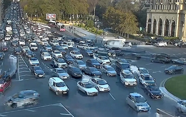 Bakının bir sıra yollarında tıxac yaranıb.