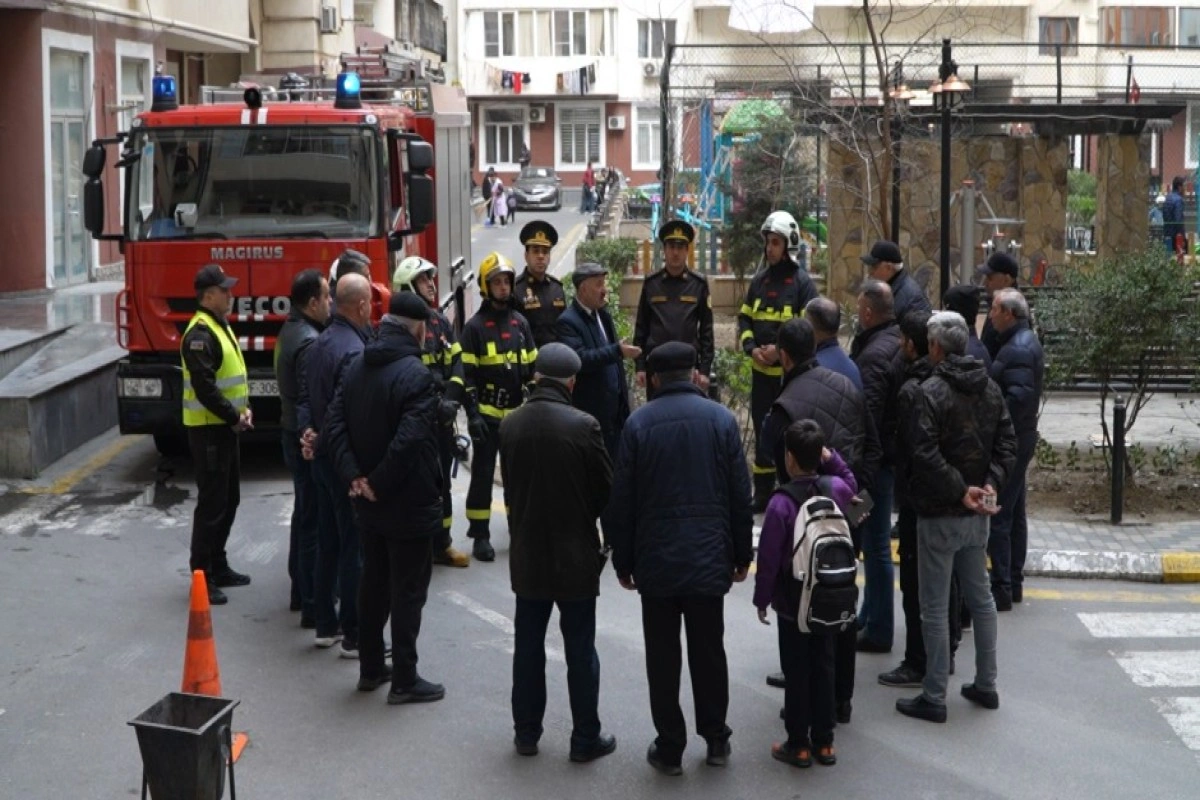 Fövqəladə Hallar Nazirliyinin Dövlət Yanğın Nəzarəti Xidmətinin təşkilatçılığı və Dövlət Yanğından Mühafizə Xidmətinin iştirakı ilə Bakı şəhəri, Nərimanov rayonu, Əliyar Əliyev küçəsi, 8 ünvanında yerləşən çoxmərtəbəli binalardan ibarət yayayış kompleksində təlim keçirilib.