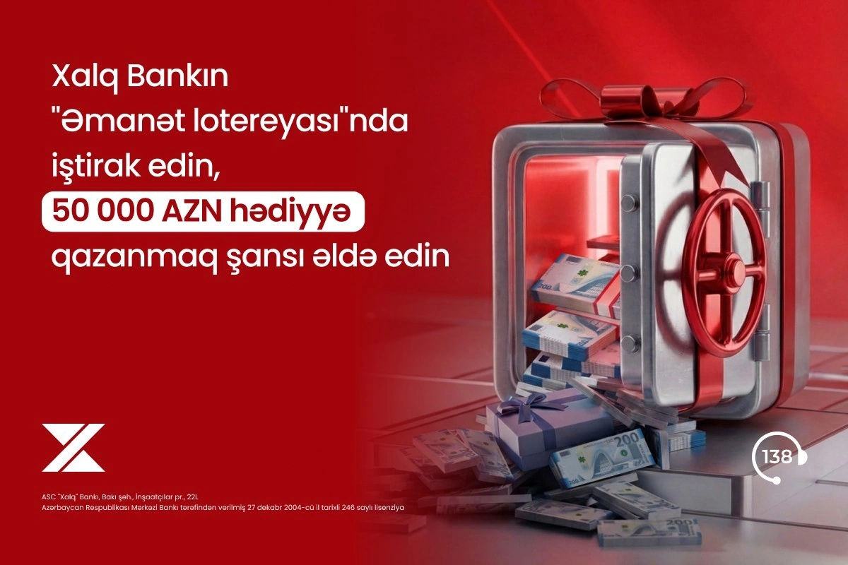 Ölkənin aparıcı banklarından olan Xalq Bank əmanət yerləşdirən müştərilər üçün stimullaşdırıcı “Əmanət” lotereyasına start verir. Şərtlərə əsasən, 1 aprel - 30 dekabr 2026-cı il tarixlərdə Xalq Bankın Bakı və Sumqayıt şəhərlərində yerləşən filiallarında minimum 500 AZN / 300 USD, digər regionlarda yerləşən filiallarda isə minimum 250 AZN / 150 USD məbləğində əmanət yerləşdirən müştərilər lotereyada iştirak etmək şansı əldə edirlər.