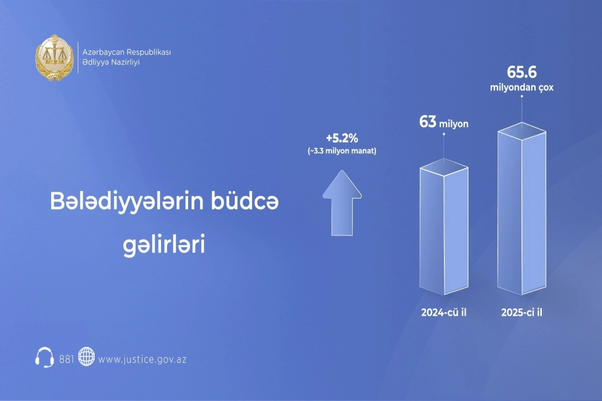 Belə ki, Dövlət Statistika Komitəsinin 2025-ci il üzrə bələdiyyə büdcələrinin icrası barədə məlumatına əsasən, ölkə üzrə bələdiyyələrin büdcə gəlirləri əvvəlki illə müqayisədə təxminən 3.3 milyon manata (5.2%) yaxın artaraq 65.6 milyon manatı keçib.