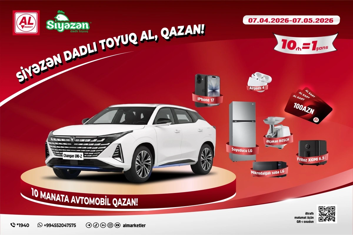 Lotereya 7 aprel – 7 may 2026-cı il tarixlərini əhatə edir və bütün AL Market filiallarında keçirilir. Kampaniyada iştirak etmək üçün alıcıların minimum 10 AZN dəyərində Siyəzən dadlı toyuq məhsulları alması kifayətdir. Hər 10 AZN-lik alış-veriş iştirakçıya 1 şans qazandırır.