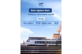 "Azərbaycan Dəmir Yolları" QSC (ADY) sərnişin tələbatını təmin etmək məqsədilə 10 may tarixində Bakı-Ağdam-Bakı marşrutu üzrə əlavə qatar reysləri təyin edib.