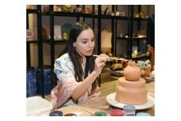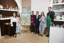 Sonra şirniyyat hazırlanmasında iştirak edən Leyla Əliyeva və Arzu Əliyeva, həmçinin ABAD Keramika mərkəzi ilə tanış olublar.