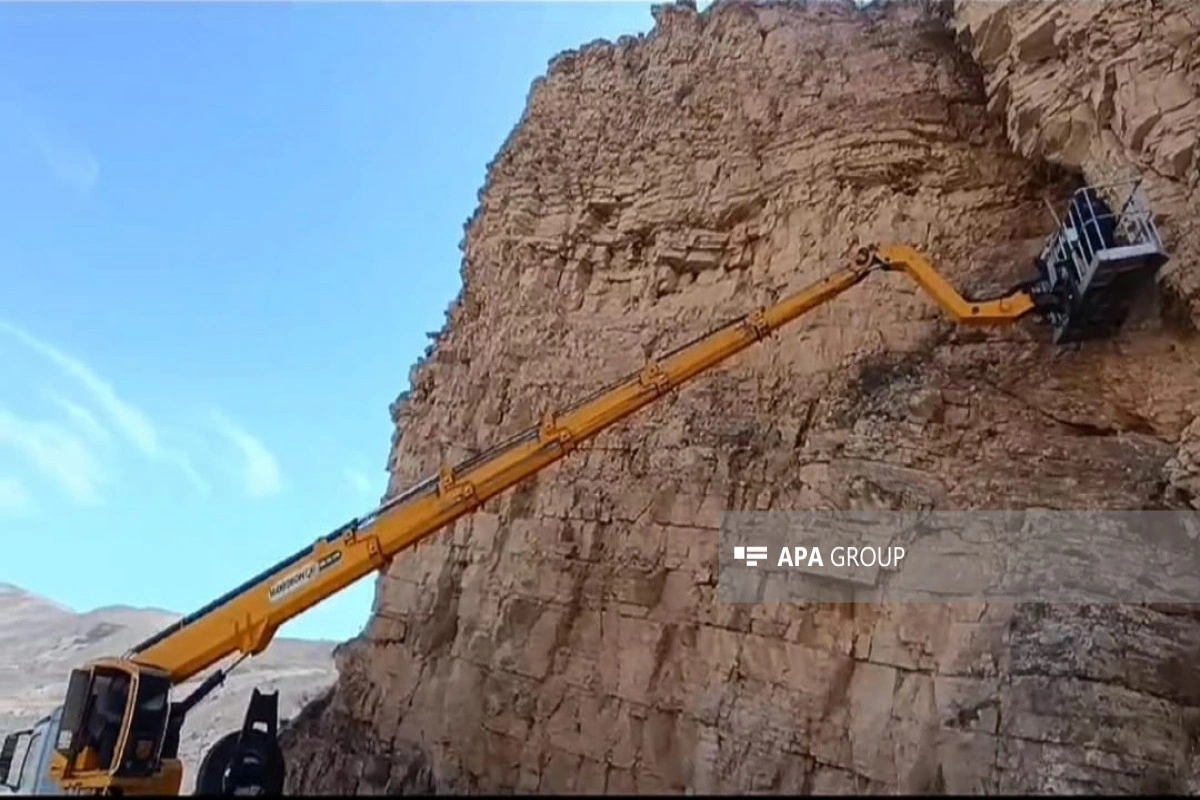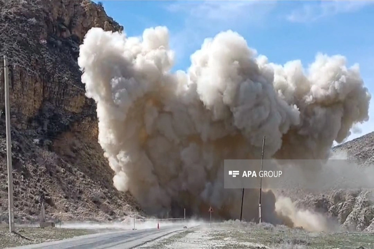 Naxçıvanda yolu kəsən qaya parçası partladılıb.