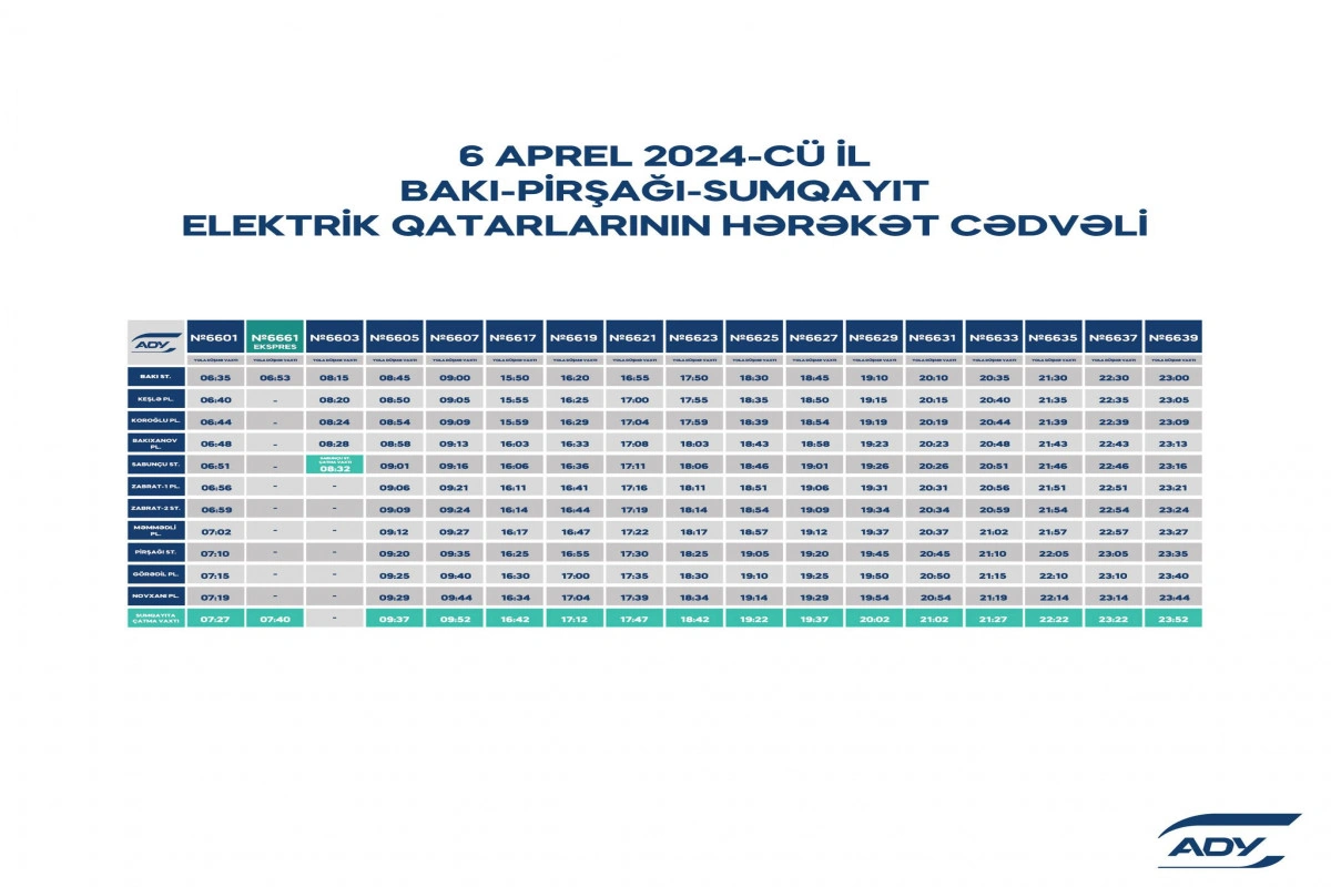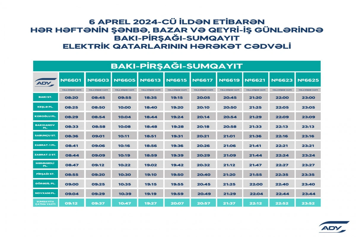 Qeyd edək ki, Bakı–Xırdalan–Sumqayıt–Bakı istiqaməti üzrə, həmçinin günün pik saatlarında Bakı–Pirşağı–Sumqayıt–Bakı istiqamətində qatarların hərəkət qrafiki olduğu kimi qalır.