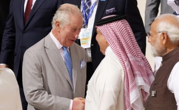 Britaniya kralı III Çarlz BMT-nin Dubayda keçirilən iqlimlə bağlı konfransına (COP28) Yunanıstan bayrağını xatırladan mavi-ağ rəngli qalstukla gedib.