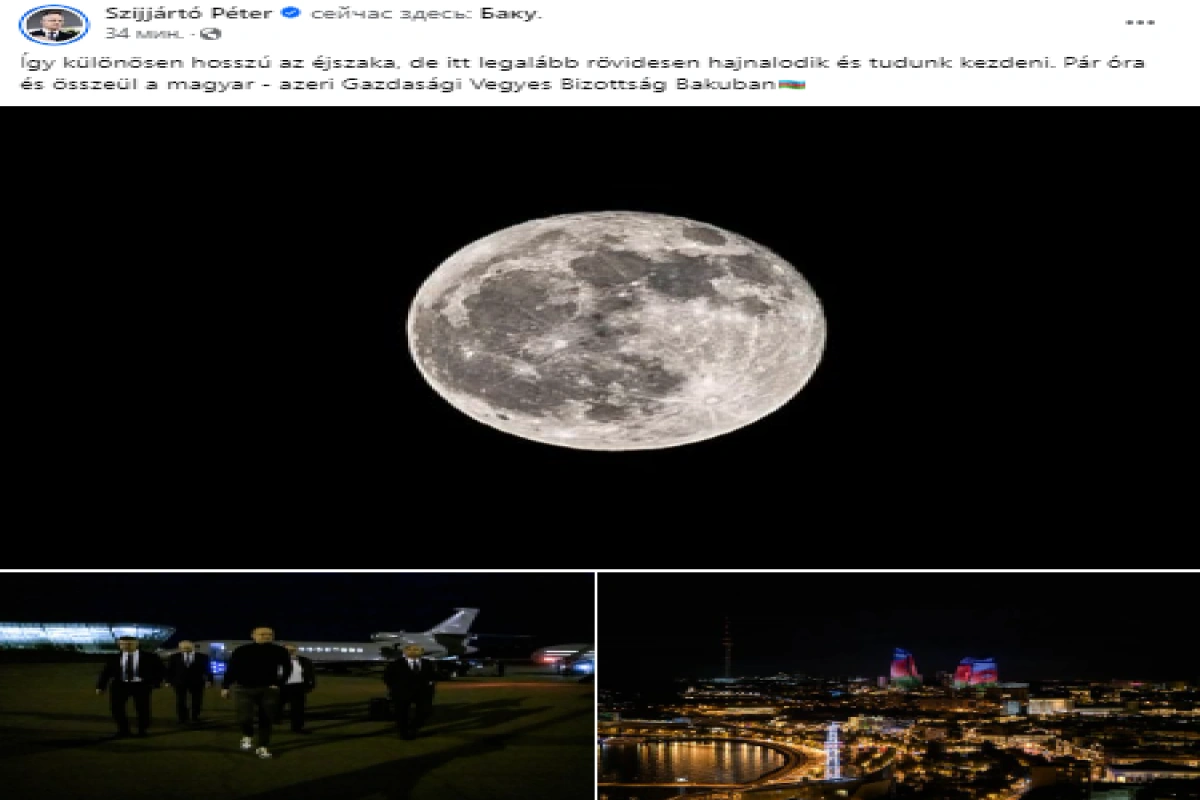 "Gecə xüsusilə uzundur, amma burada tezliklə səhər açılacaq və biz başlaya bilərik. Bir neçə saatdan sonra Bakıda Macarıstan-Azərbaycan Birgə İqtisadi Komitəsinin iclası keçiriləcək", - nazir qeyd edib.