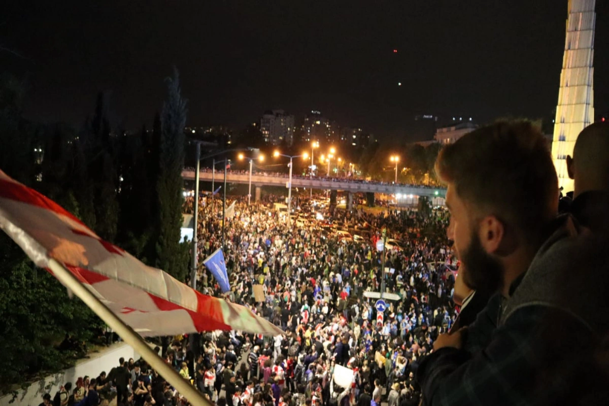 APA-nın Gürcüstan bürosu xəbər verir ki, parlament binasının qarşısına toplanmış minlərlə etirazçı buradan Rustaveli prospekti ilə Qəhrəmanlar meydanına yürüş ediblər.