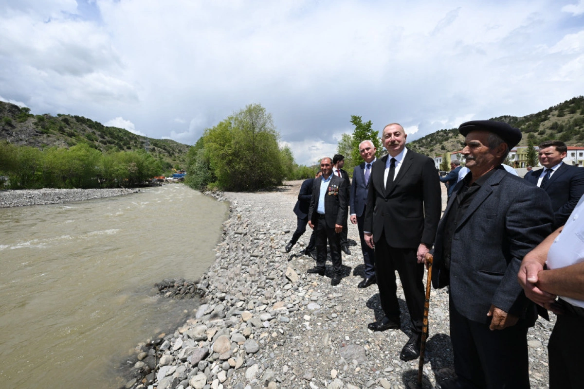 Sonra Prezident İlham Əliyev və sakinlər Həkəri çayının sahilinə gəldilər.