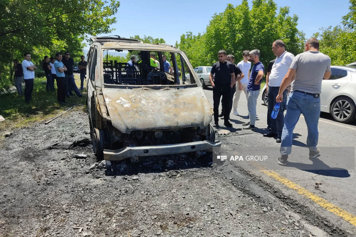 Qax rayonunda mikroavtobus yanıb.