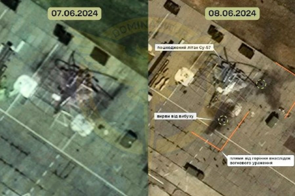 Ukrayna Müdafiə Nazirliyinin Baş Kəşfiyyat İdarəsi hücumun nəticələrini əks etdirdiyi iddia edilən peyk fotolarını paylaşıb.