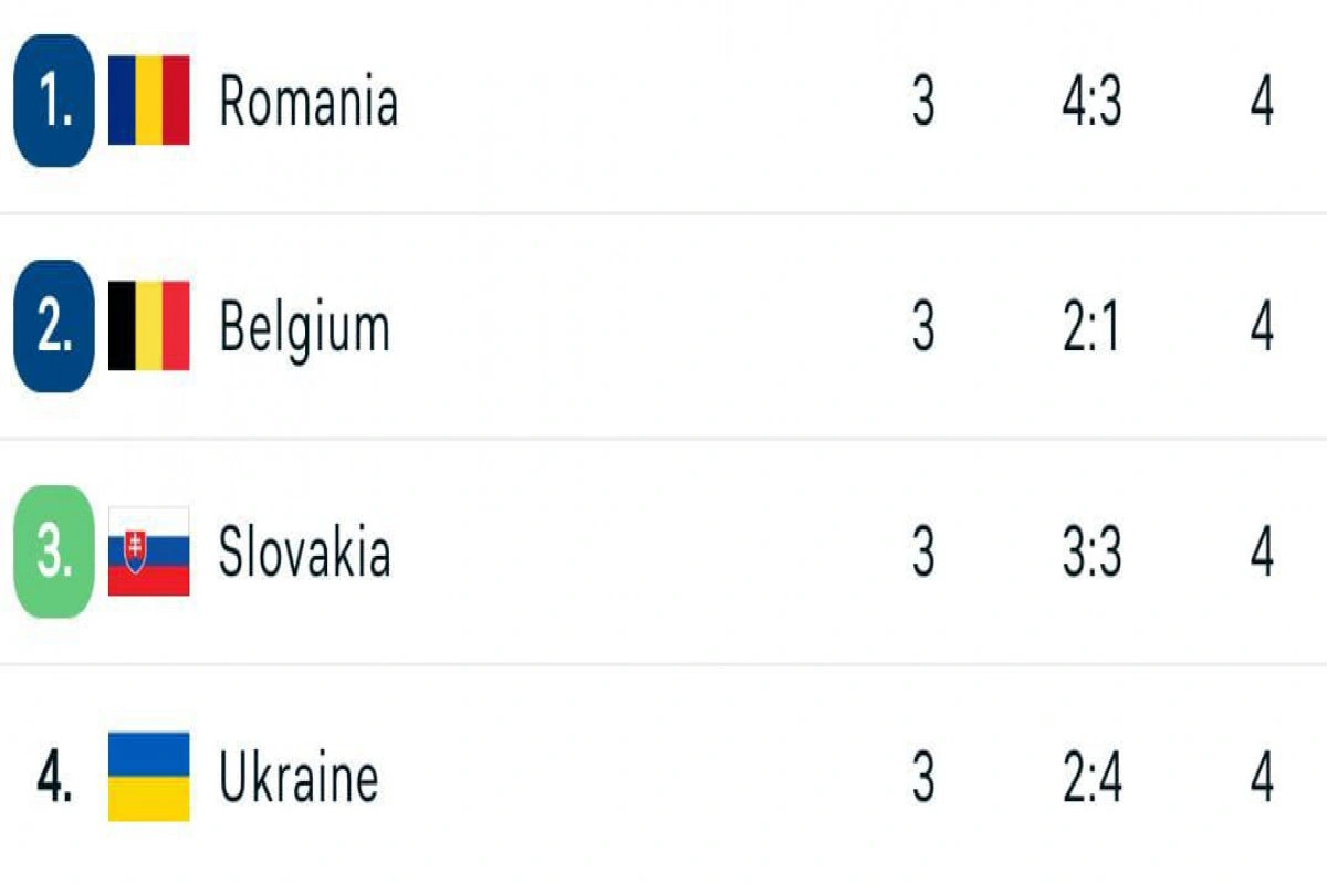 26 iyun AVRO-2024 E qrupu, III tur 20:00. Slovakiya - Rumıniya 1:1 Qol: Duda, 24 - Marin, 37 Baş hakim: Daniel Siebert (Almaniya). “Frankfurt Arena”. 20:00. Ukrayna - Belçika 0:0 Baş hakim: Entoni Teylor (İngiltərə). Ştutqart, "MHP Arena". Bu nəticələrə əsasən, Ukrayna yığması qrupdan çıxa bilməyib.