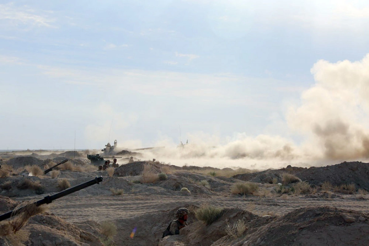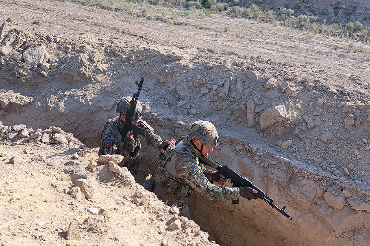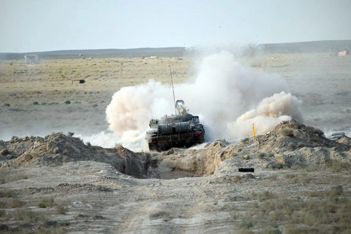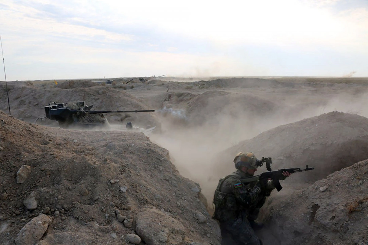 Təlim meydançasında hücuma keçən Azərbaycan Ordusunun Quru Qoşunlarının hərbi qulluqçuları şərti düşmən qüvvələrinin müqavimətinin qarşısını alaraq onun canlı qüvvəsini və döyüş texnikasını məhv ediblər.