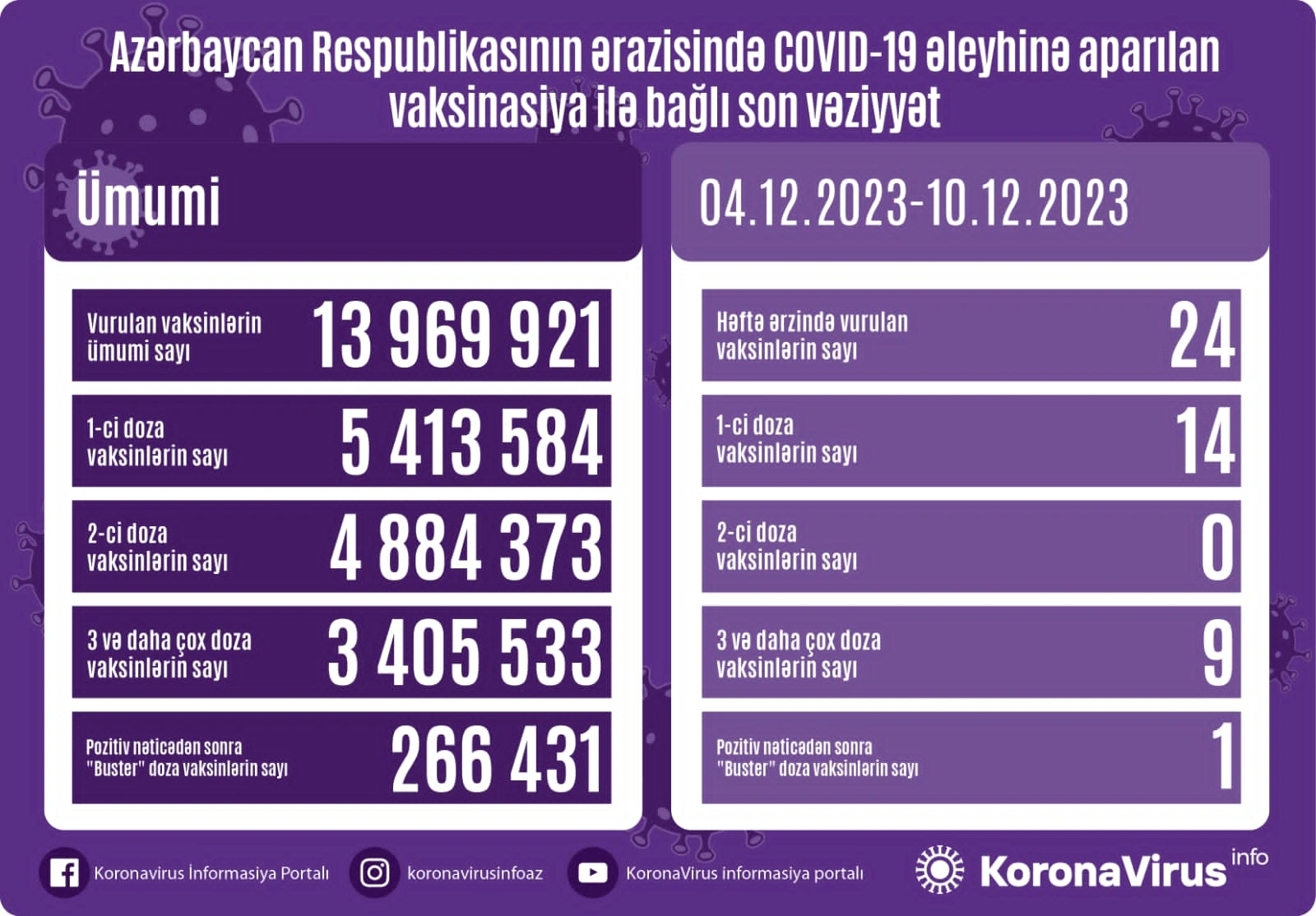 Azərbaycanda son həftədə koronavirus (COVID-19) əleyhinə 24 vaksin vurulub.