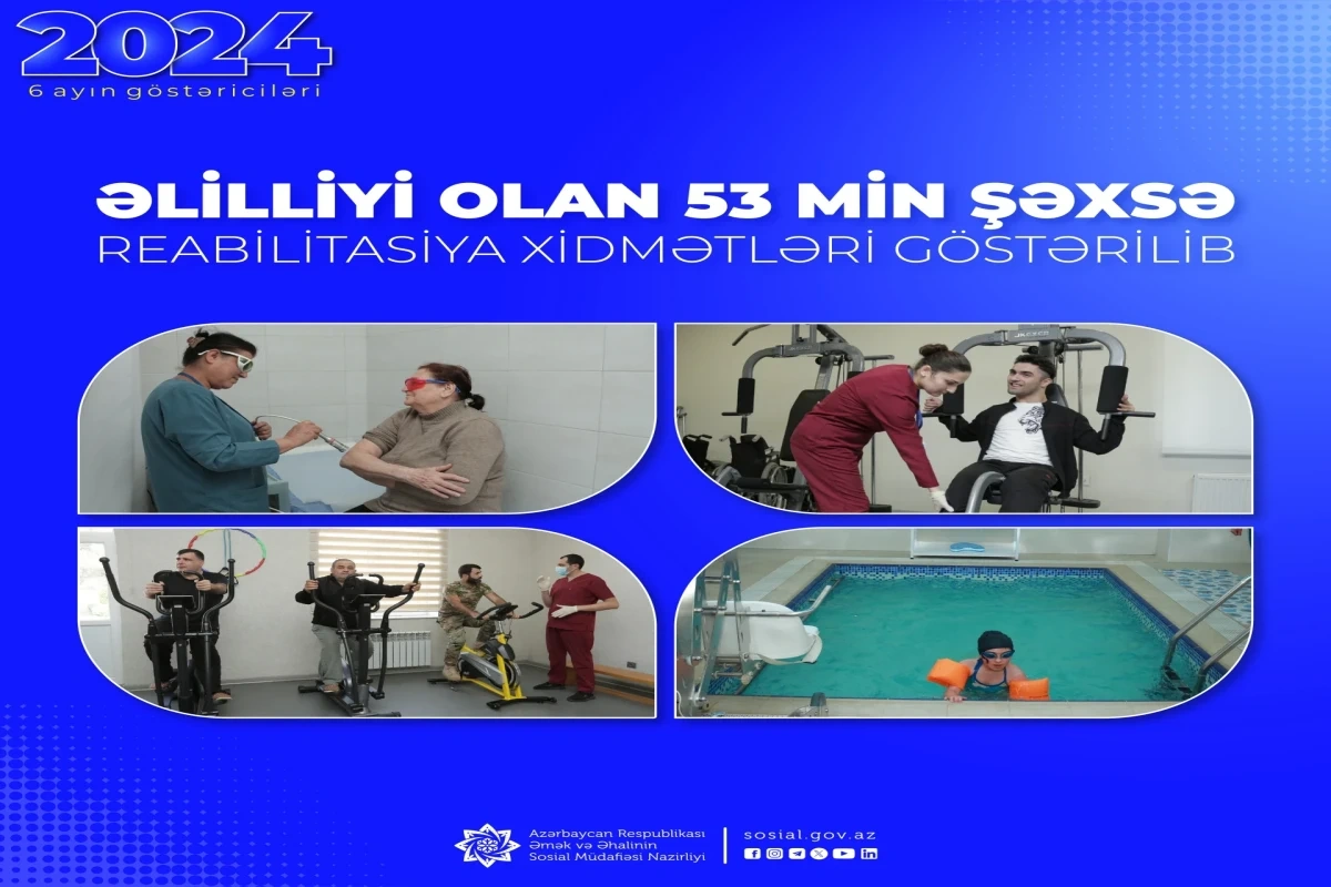 Əmək və Əhalinin Sosial Müdafiəsi Nazirliyin tabeliyində Dövlət Tibbi-Sosial Ekspertiza və Reabilitasiya Agentliyi tərəfindən bu ilin 6 ayında əlilliyi olan 53 min şəxsə reabilitasiya xidmətləri göstərilib.