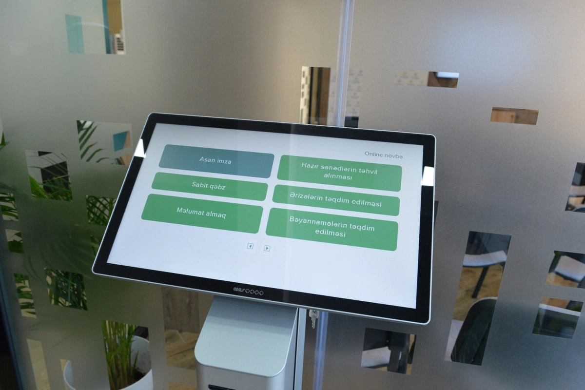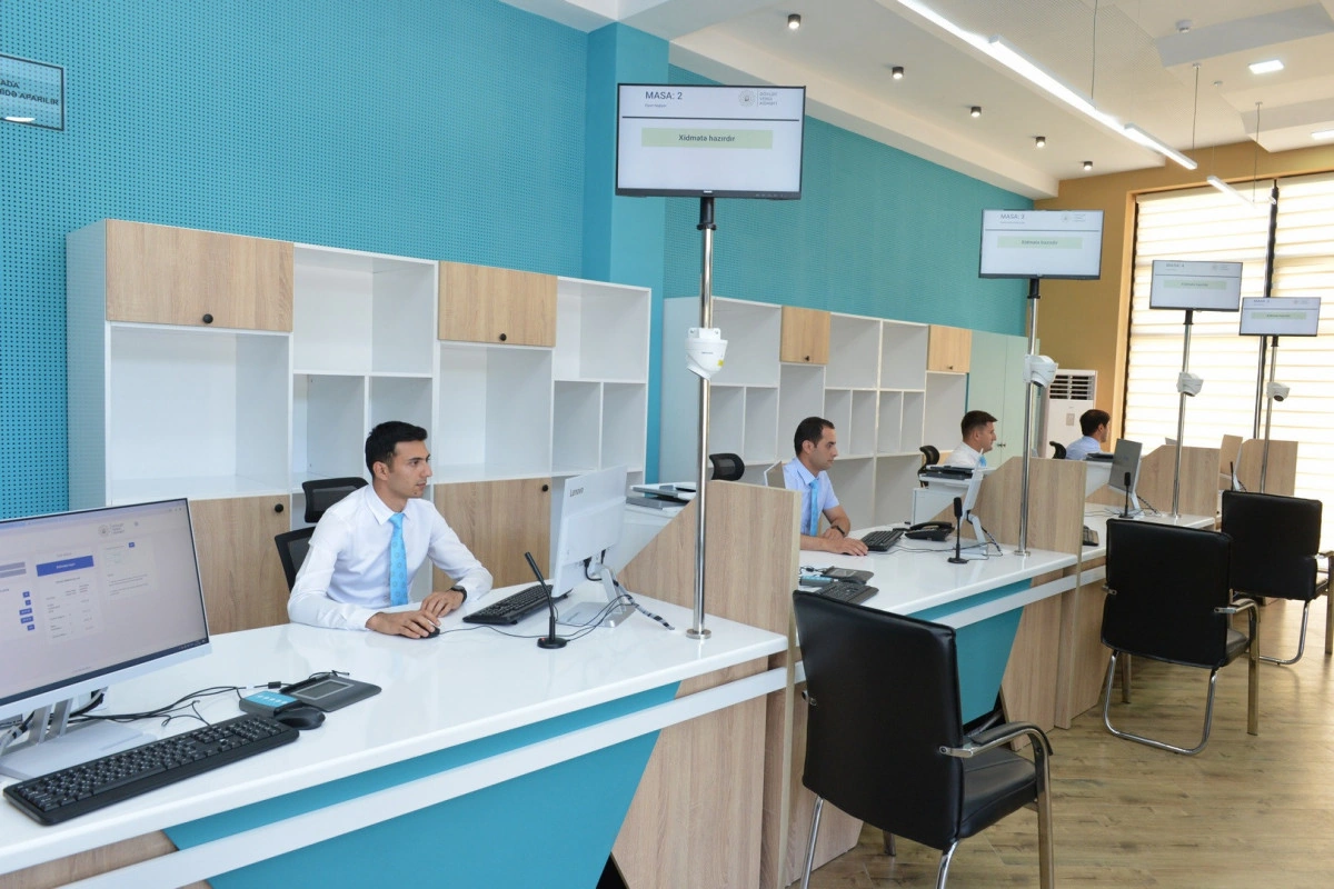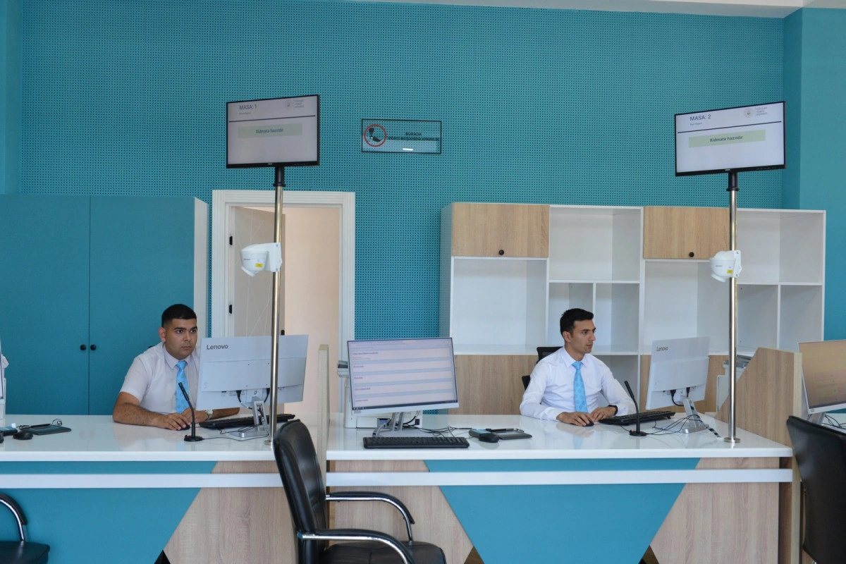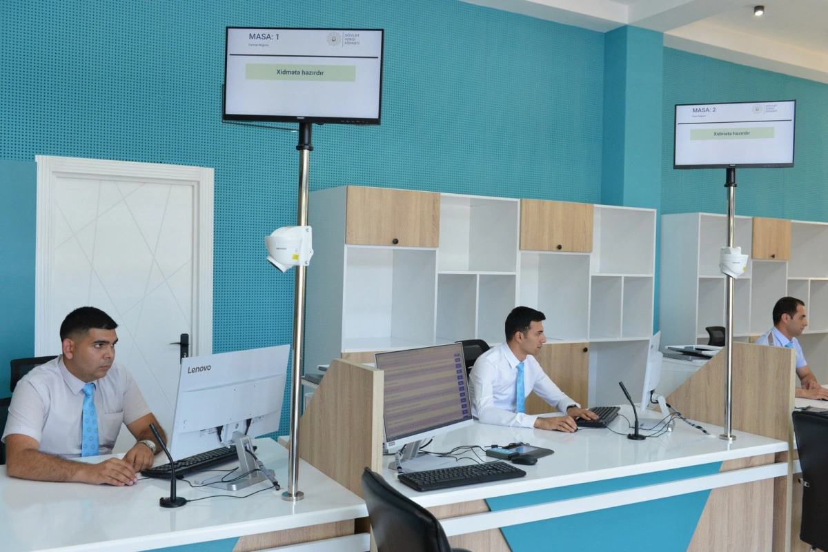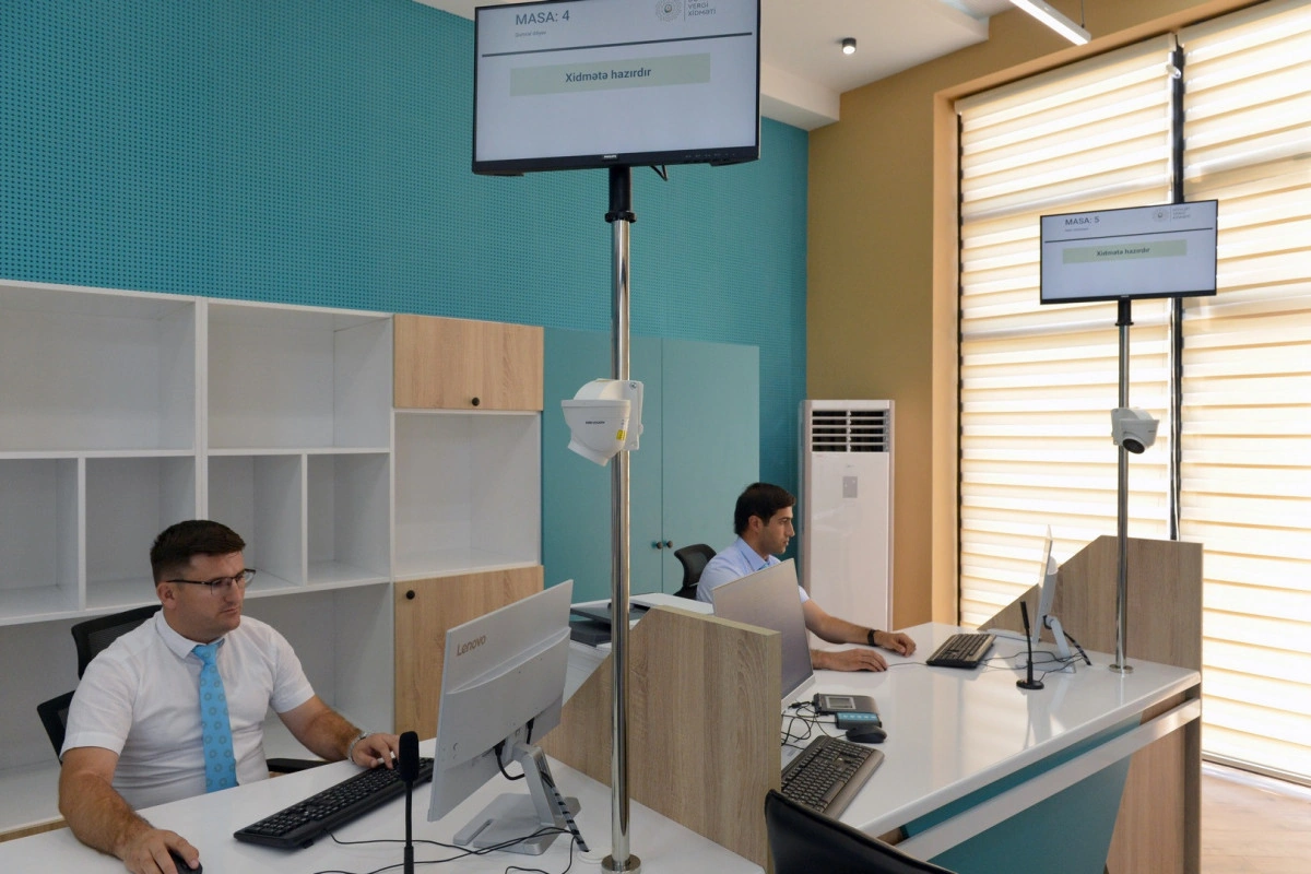 Ən son texnoloji yeniliklər, elektron növbə və müasir xidmət avadanlıqları ilə təmin olunan mərkəzə müraciət edən vergi ödəyicilərinə xidmət prosesi əyani şəkildə göstərilib.