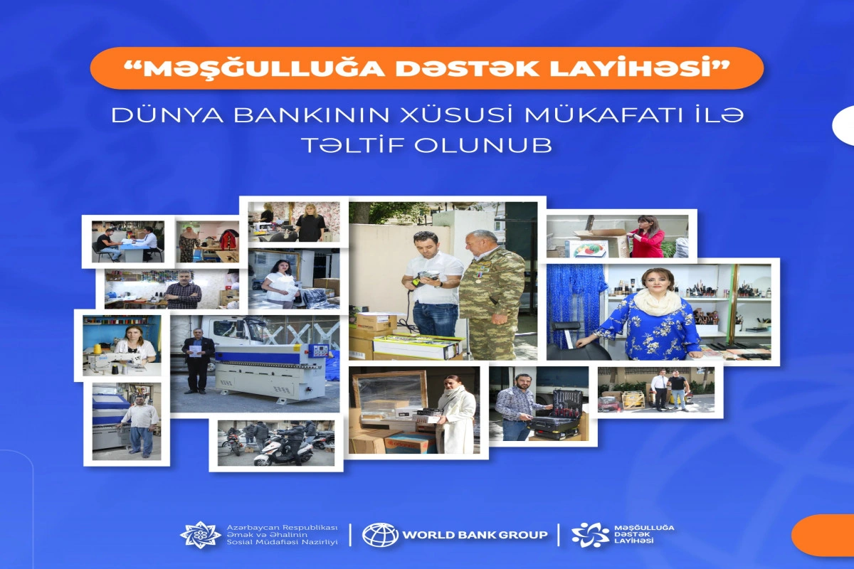 Əmək və Əhalinin Sosial Müdafiəsi Nazirliyindən APA-ya verilən xəbərə görə, Dünya Bankının maliyyə dəstəyi ilə həyata keçirilən “Məşğulluğa Dəstək Layihəsi”nin uğurlu icrası Dünya Bankının Avropa və Mərkəzi Asiya regionu üzrə vitse-prezidentinin 2024-cü il üzrə mükafatı ilə təltif olunub.