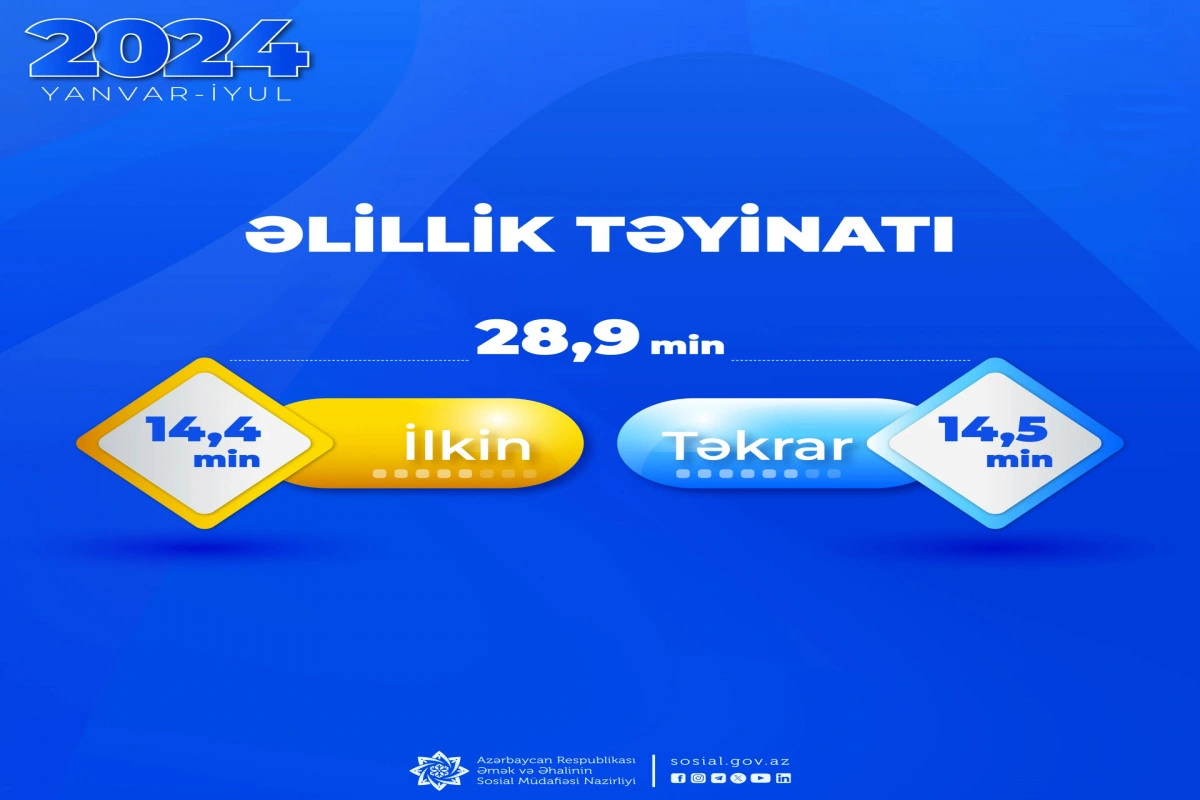 Bildirilib ki, onlardan 14,4 mininə ilkin, 14,5 mininə təkrar əlillik təyinatı aparılıb.