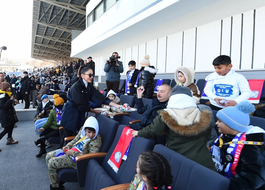 “Qafqazinfo”nun məlumatına görə, Prezident İlham Əliyev və birinci xanım Mehriban Əliyeva qarşılaşmanı şəhid övladları ilə birgə izləyiblər.