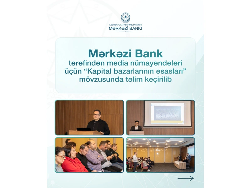 20-dən çox jurnalistin iştirak etdiyi təlimdə Mərkəzi Bank nümayəndələri tərəfindən kapital bazarlarının əsas anlayışları, funksiyaları, bazar infrastrukturunun fəaliyyəti və maliyyə alətləri haqqında praktik nümunələrlə zənginləşdirilmiş təqdimat keçirilib. Təlimdə həmçinin kapital bazarında tənzimlənmə və nəzarətin təşkili çərçivəsində Mərkəzi Bank tərəfindən həyata keçirilən təşəbbüslər haqda məlumat təqdim olunub. Təlimin yekununda media nümayəndələrini maraqlandıran suallar cavablandırılıb.