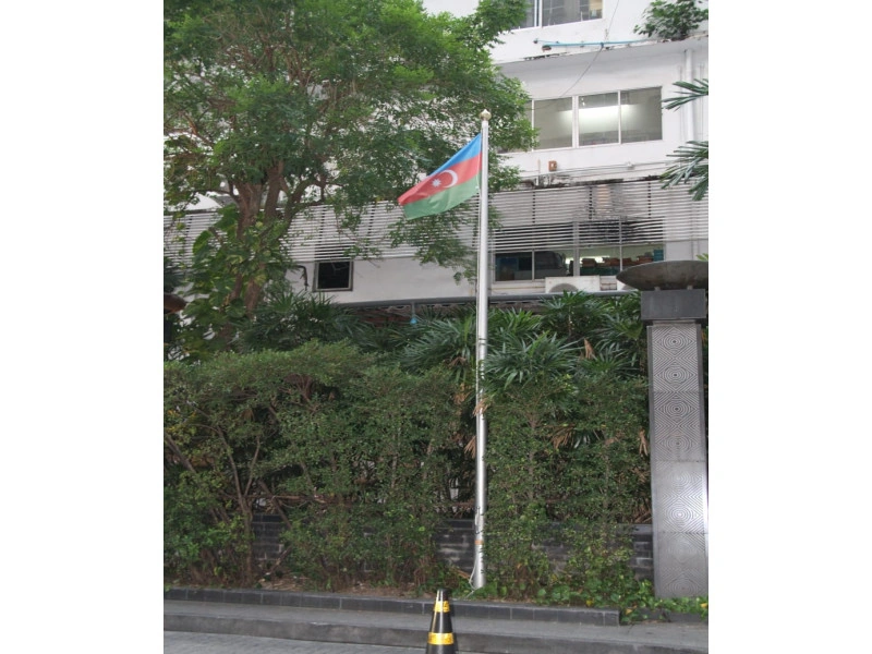 Nazir müavini, səfirliyin yerləşdiyi binanın qarşısında Azərbaycanın dövlət bayrağını ucaldıb.