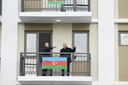Sonra Prezident İlham Əliyev və birinci xanım Mehriban Əliyeva Ağdam şəhərinə köçən sakinlərlə görüşdülər.