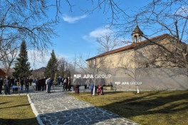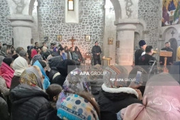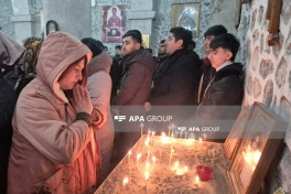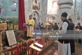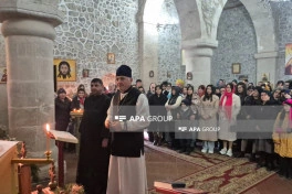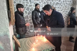 Sonra kilsədə şamlar yandırılıb, dualar oxunub.