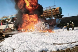 Yaxınlıqdakı yanacaq çənləri yanğından mühafizə olunub.