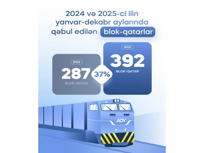AZCON Holding şirkətlərindən olan "Azərbaycan Dəmir Yolları" QSC (ADY) 2025-ci ildə 392 blok-qatar qəbul edib. Bu, 2024-cü ilin göstəricisi (287 blok-qatar) ilə müqayisədə 37% artım deməkdir.