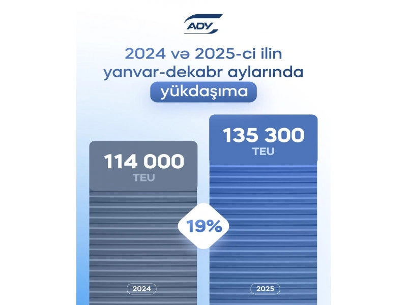 ADY-dən "APA-Economics"ə verilən məlumata görə, ötən il ümumilikdə 135 300 TEU konteyner yük daşınıb ki, bu da 2024-cü ilin göstəricisindən (114 000 TEU) təxminən 19 faiz çoxdur.