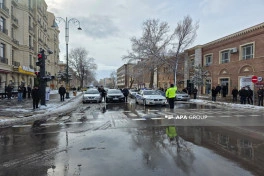 APA-nın yerli bürosu xəbər verir ki, dövlət bayraqları yarıyadək endirilib, sərnişinlərin, nəqliyyatın hərəkəti bir dəqiqəlik dayandırılıb