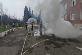Daha sonra praktiki hissə çərçivəsində FHN-in “112” qaynar telefon xəttinə daxil olan şərti yanğın barədə məlumat əsasında “hadisə yerinə” operativ çatan yanğın-xilasetmə qüvvələri “zərərçəkmişləri təhlükəli ərazidən” təxliyə edərək onlara təxirəsalınmaz ilkin yardımın göstərilməsi, “yanğın” yerində çevik kəşfiyyatın aparılması və “yanğının söndürülməsi” əməliyyatlarını uğurla yerinə yetiriblər.