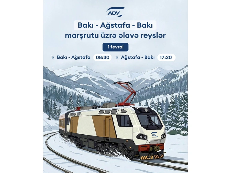 "Azərbaycan Dəmir Yolları" QSC (ADY) artan sərnişin tələbatını təmin etmək məqsədilə 1 fevral tarixində Bakı-Ağstafa-Bakı istiqamətində əlavə qatar reysləri təyin edib.