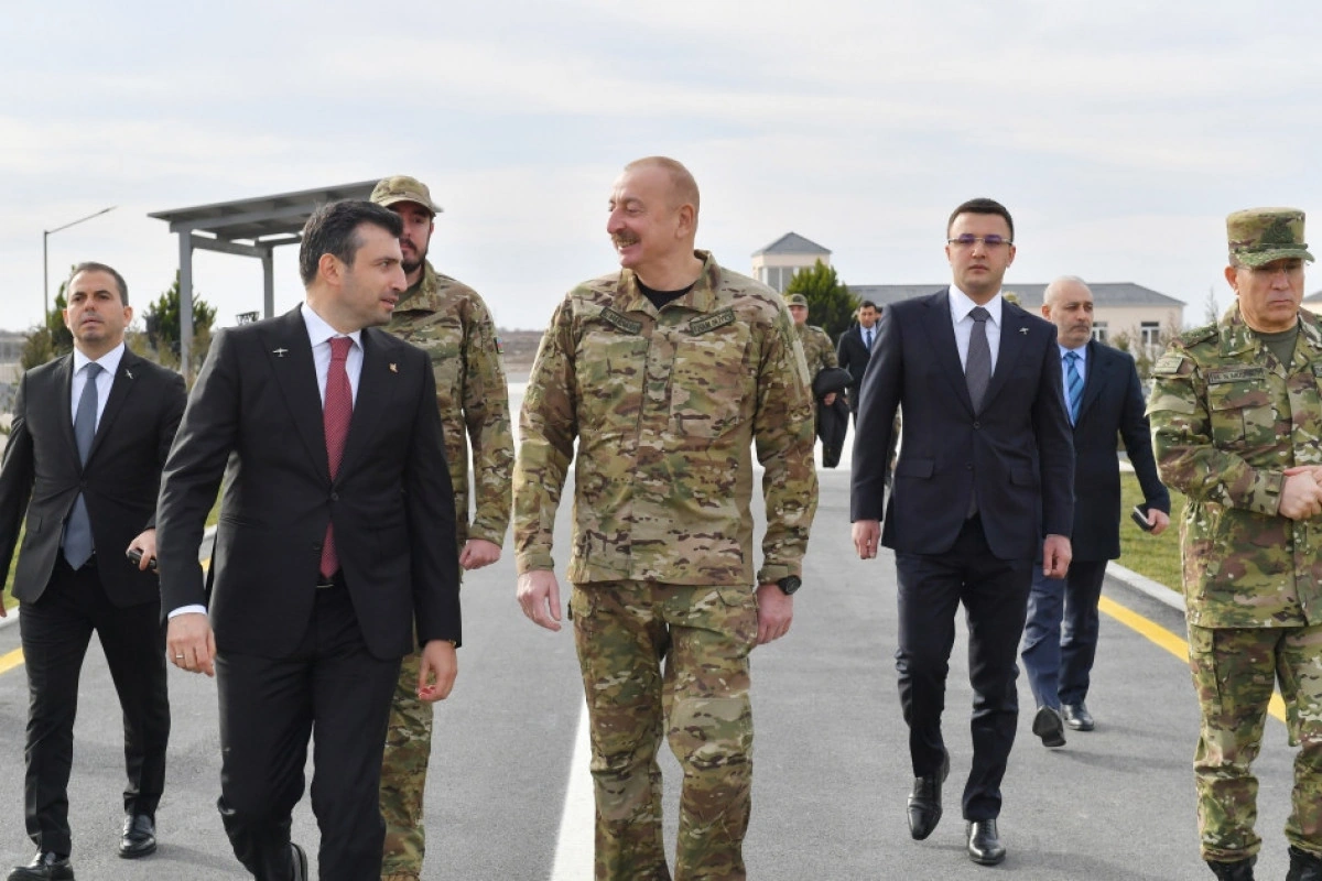 Sonra Ali Baş Komandan yeni hərbi obyektdə müxtəlif tipli PUA üçün uçuş-enmə zolağına gəlib. “Akıncı” hücum PUA-sının havaya qalxmasını izlədikdən sonra idarəetmə məntəqəsinə gələn Prezident İlham Əliyev burada PUA-nın idarəolunmasını praktiki həyata keçirib. PUA-nın yerə enməsini izləyən Azərbaycan Prezidenti uçuş vasitəsinin üzərinə xatirə imzasını çəkib.