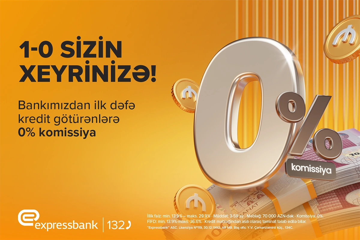 Bankın yeni kredit təklifi çərçivəsində "Expressbank"dan ilk dəfə kredit götürəcək şəxslər heç bir komissiya xərci ödəmədən nağd pul əldə edə biləcəklər.