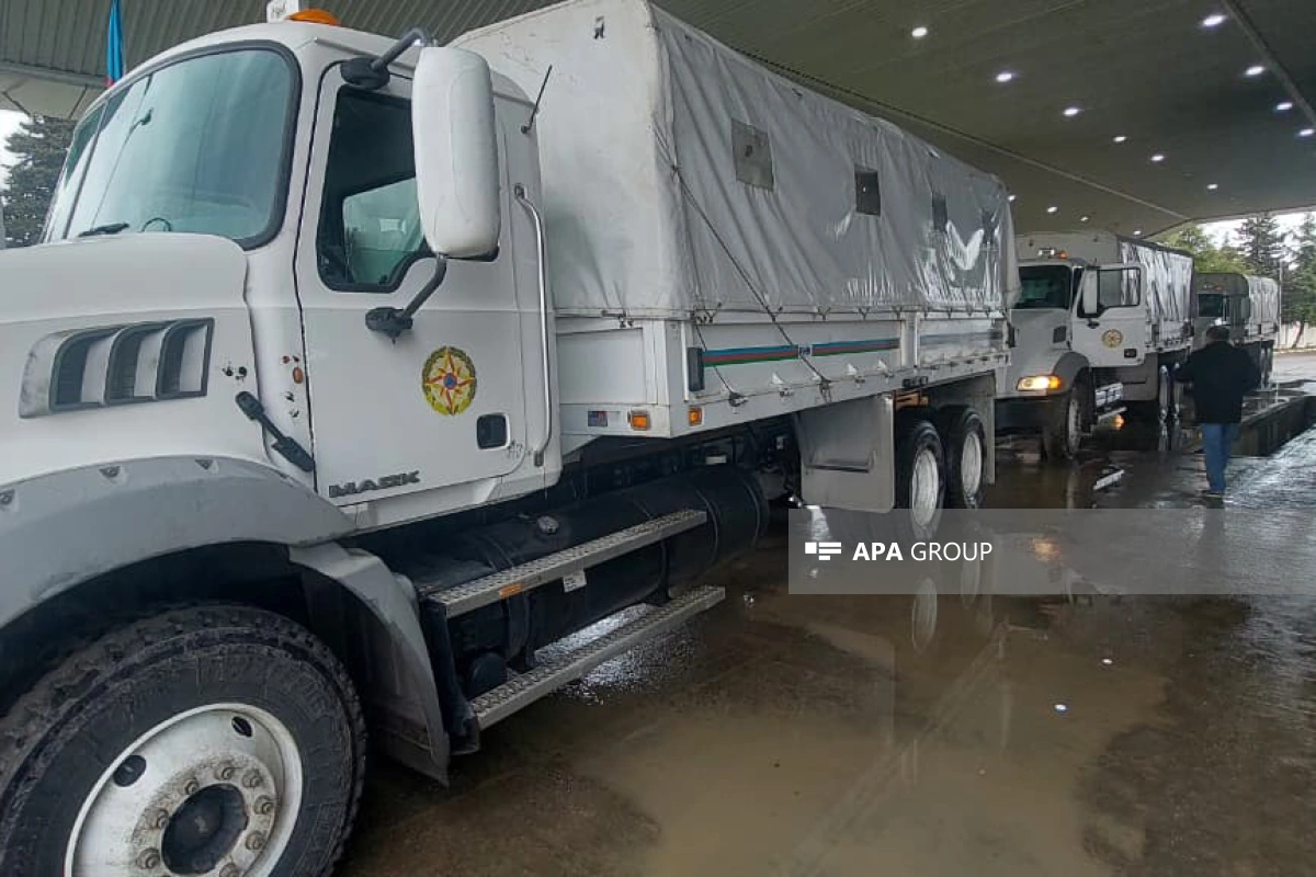 APA xəbər verir ki, Azərbaycan Prezidentinin tapşırığına uyğun olaraq Fövqəladə Hallar Nazirliyinin avtomobilləri ilə İran İslam Respublikasına yola salınan humanitar yardıma 10 ton un, 6 ton düyü, 2,4 ton şəkər, 4 tondan artıq su, 600 kq-a yaxın çay, 2 tona yaxın dərman və tibbi ləvazimatlar daxildir.